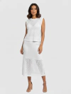 Conjunto moderno sofisticado composto por blusa sem mangas e saia midi em tela vazada. A blusa tem modelagem reta e leve transparência, enquanto a saia midi traz caimento fluido e detalhe de forro curto, criando um contraste elegante. Confeccionado em 86% acrílico e 14% poliéster, com forro 100% poliéster, tecido modal garantindo conforto e caimento perfeito. Versátil e estiloso, é ideal para produções frescas e sofisticadas, unindo modernidade e elegância.