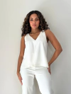 Regata de modelagem reta e solta, com decote em V e fenda discreta na barra, confeccionada em 92% viscose e 8% poliéster. Leve e de caimento fluido, proporciona conforto e versatilidade, ideal para combinações casuais ou mais sofisticadas.
