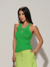 Regata de tricot com modelagem justa e toque macio. Possui alças médias e detalhe nas costas cruzadas, que adiciona um toque moderno e delicado ao visual. Confeccionada em tricot leve e confortável, com composição de 71% viscose e 29% poliamida, garantindo ótimo caimento e respirabilidade. Ideal para compor looks versáteis, do casual ao sofisticado.