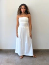 Uma peça fresca, versátil e perfeita para dias quentes, unindo delicadeza e praticidade. A parte do busto é justa e estruturada, garantindo segurança e destacando a silhueta, enquanto a saia tem caimento solto e fluido, trazendo movimento e conforto ao look. Composição: corpo do vestido: 97% algodão, 3% elastano, parte superior (busto): 95,50% viscose, 4,50% elastano